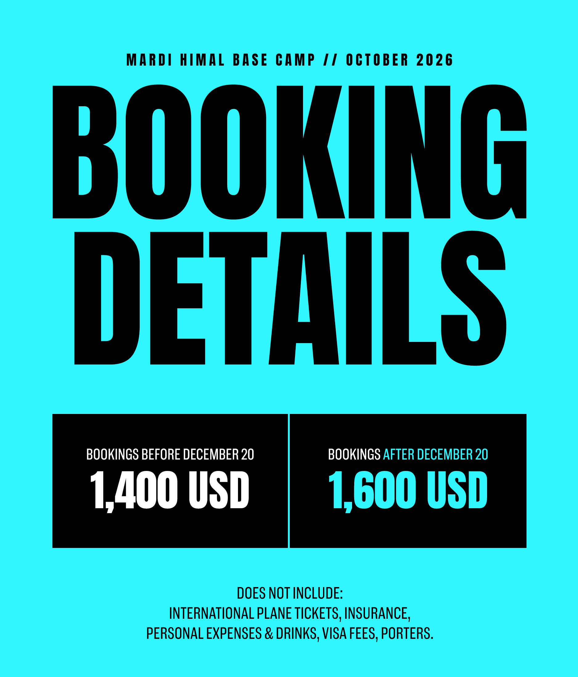 BOOK A PREMIUM TRIP WITH THE CAMP 49 TEAM TO MARDI HIMAL BASE CAMP, AND TAKE PART IN OUR UPCOMING 2026 DOCUMENTARY FILM.